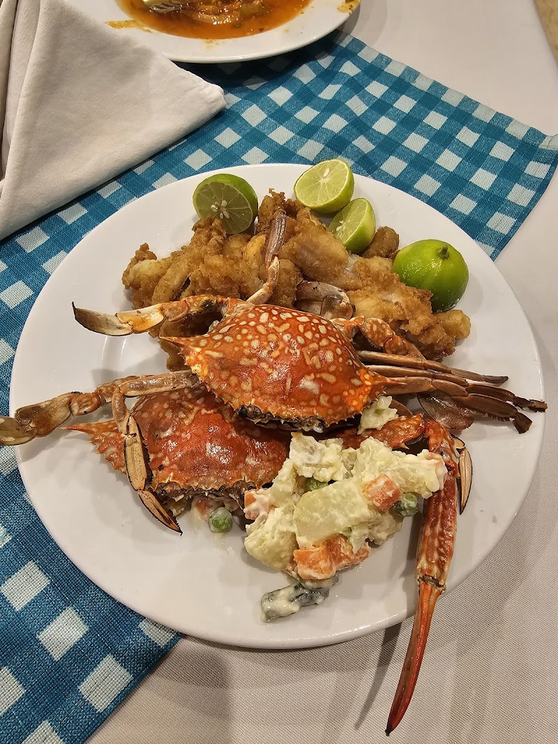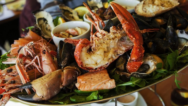 مطعم متواضع فيه تراس ويقدّم أطباقًا مبتكرة من المأكولات البحرية، تشتمل على الحساء والأطباق الرئيسية