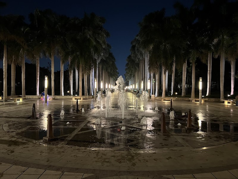 Manicured gardens & lawns with fountains, cafes, restaurants & an open-air theater, plus city views.