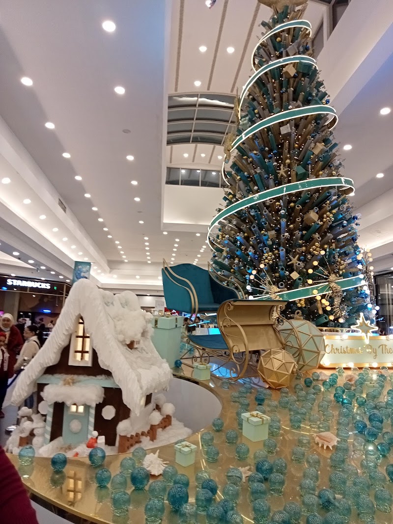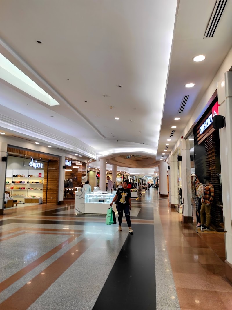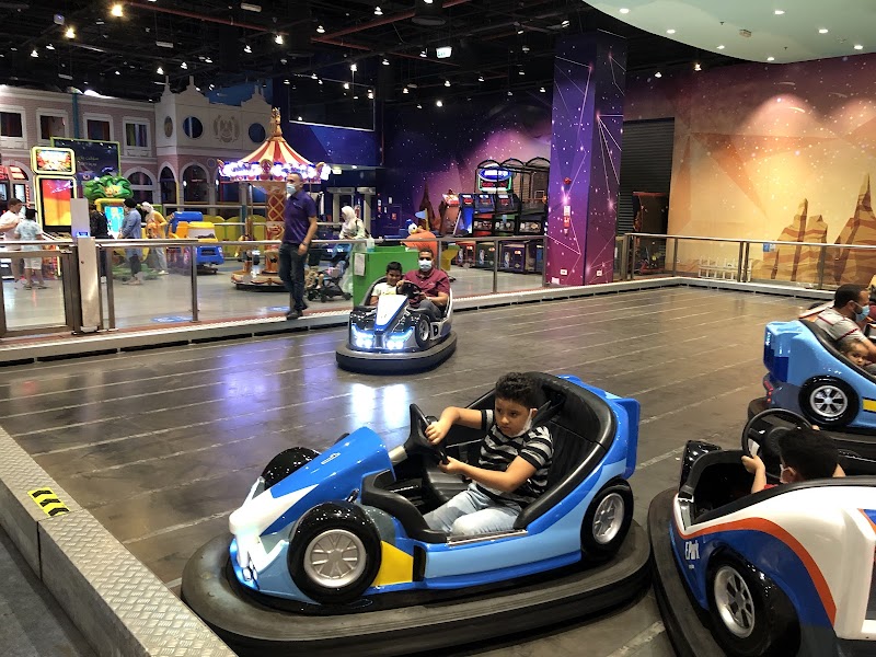 مركز تجاري مزدحم للبيع بالتجزئة يضم متاجر لعلامات تجارية ووجبات سريعة ومطاعم وألعابًا وسينما