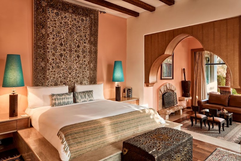 منتجع فخم فيه أجنحة أنيقة مع مدافئ وشرفات، ويضم مسبحًا ومنتجعًا صحيًا ومطعمًا
