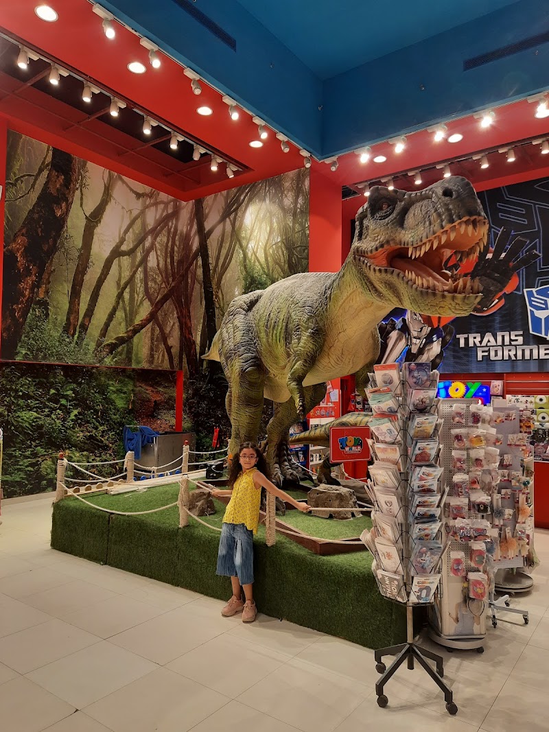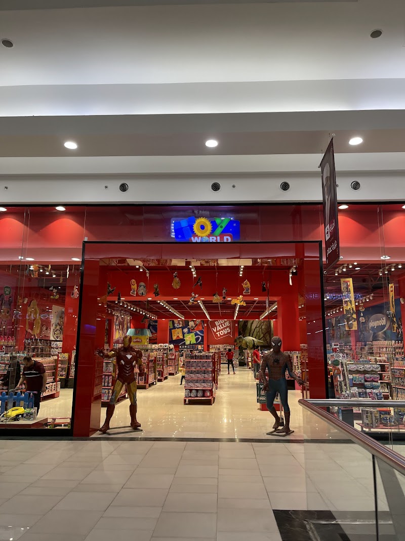 Huge shopping complex with brand-name stores, a food court, movie theater & fountain display.