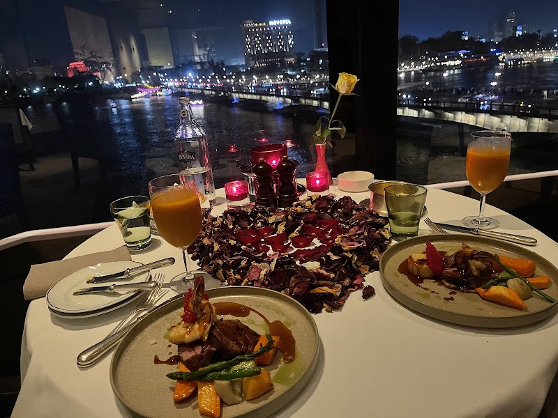 يتم تقديم مأكولات فرنسية كلاسيكية بلمسة مميزة في مطعم فندق أنيق يوفر إطلالات على نهر النيل.